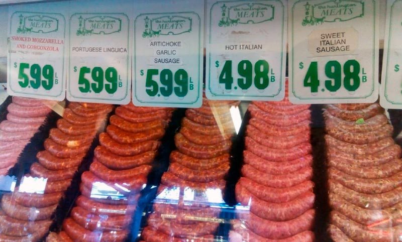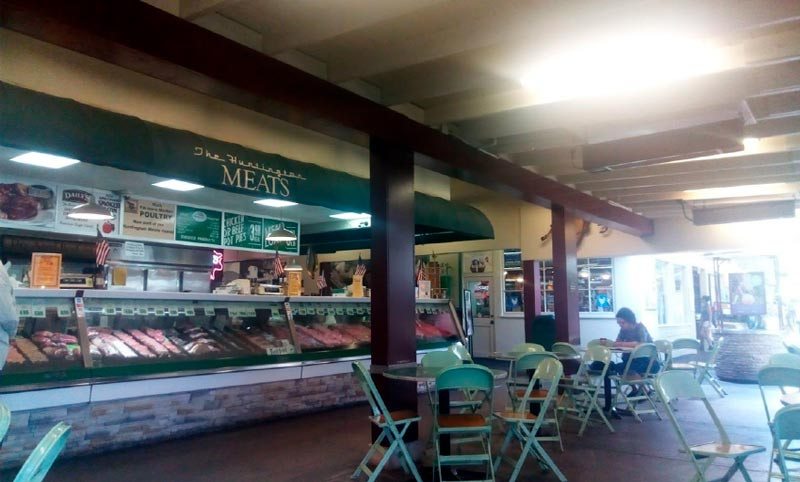 En uno de sus rincones, m??s o menos alejado del patio central, funciona la carnicer??a Huntington Meats, propiedad de Jim Cascone, dedicada a la venta de carnes Prime. All?? las carnes se clasifican rigurosamente de acuerdo a est??ndares de calidad. El tope de todas las gamas, es el American Prime, y eso es lo que se vende en Huntingon meats.